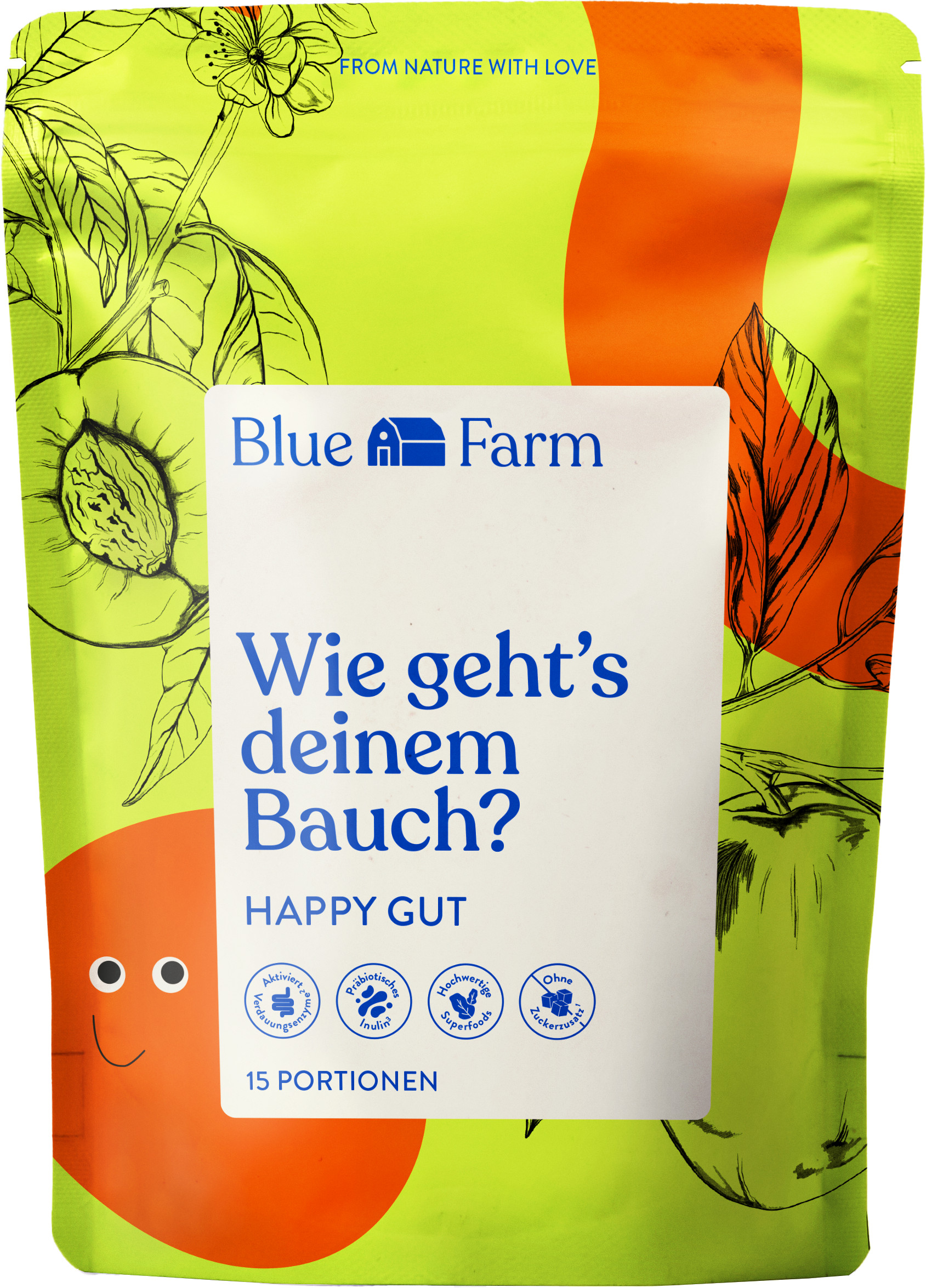 Happy Gut de Blue Farm associe un mélange soigneusement équilibré d’avoine fermentée, d’inuline de chicorée, de poudres de fruits et de plantes, ainsi que de calcium végétal issu d’algues rouges, le tout proposé sous forme de poudre pratique. Sa composition fruitée à base de mangue, d’ananas et de pêche offre une saveur agréable et permet d’intégrer facilement ce drink à la routine quotidienne, en réunissant plusieurs ingrédients en une seule boisson.