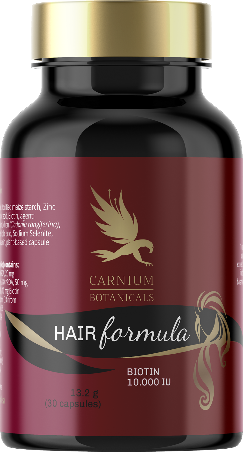 HAIR Formula est un complément alimentaire conçu pour soutenir la santé des cheveux, de la peau et des ongles. Il associe un ensemble de vitamines et de minéraux, dont le zinc, la biotine, le magnésium, la vitamine A et la vitamine B12. Les gélules sont 100 % vegan.