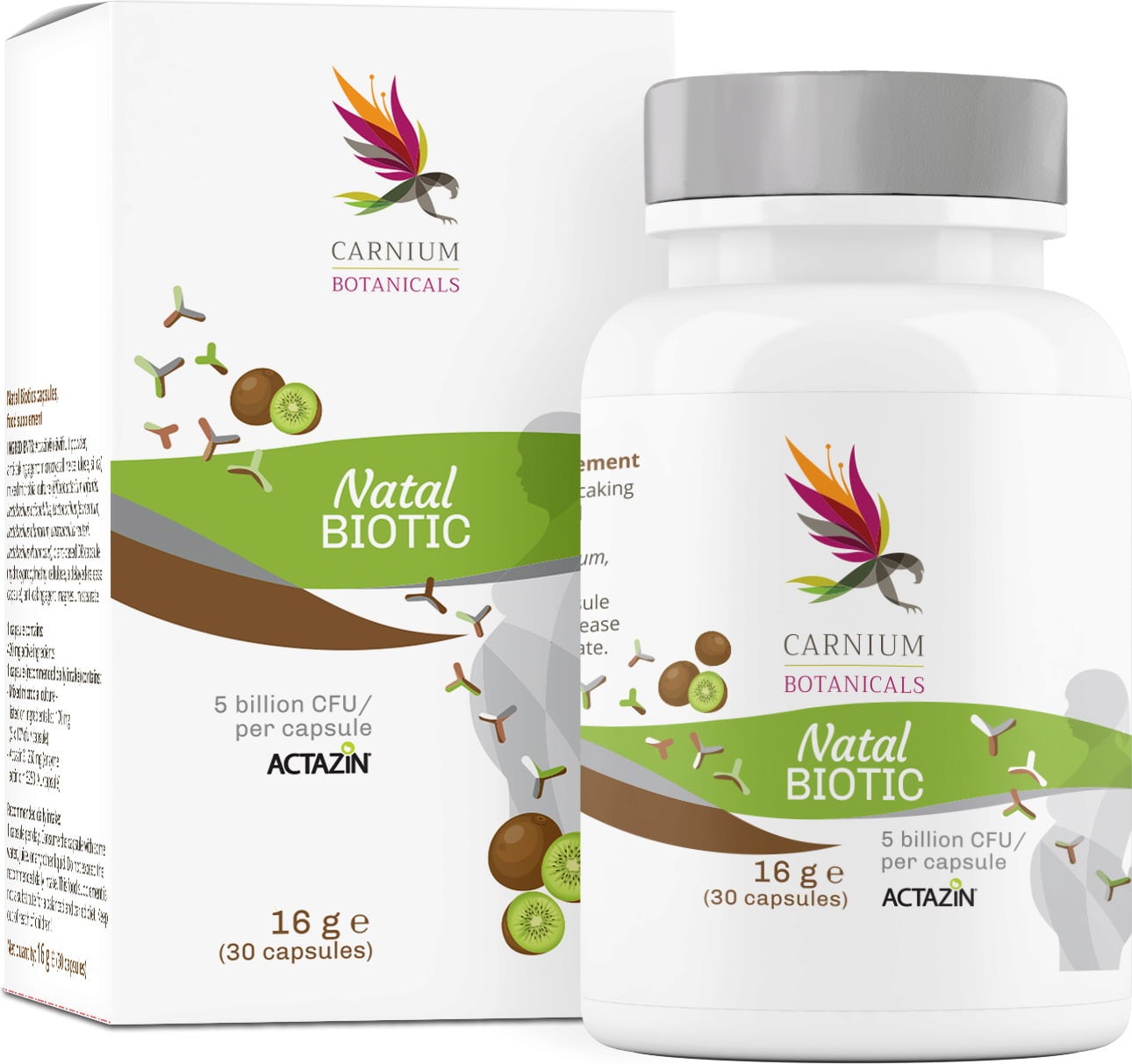 Natal Biotic de Carnium Botanicals est un complément végan spécialement formulé pour les femmes enceintes et allaitantes. Il contient de précieuses cultures microbiologiques ainsi qu’un extrait de kiwi Actazin® de haute qualité.