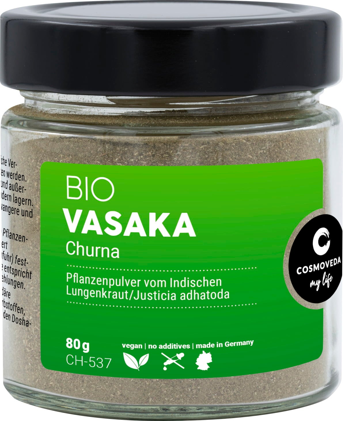 Vasaka - Adhatoda vasica - est un arbre à feuilles persistantes, atteignant 3 m de haut avec des feuilles lancéolées, des fleurs blanches ou violettes et des fruits à quatre graines. Dans l'Ayurveda, les feuilles, les fleurs, les racines et les fruits sont utilisés.