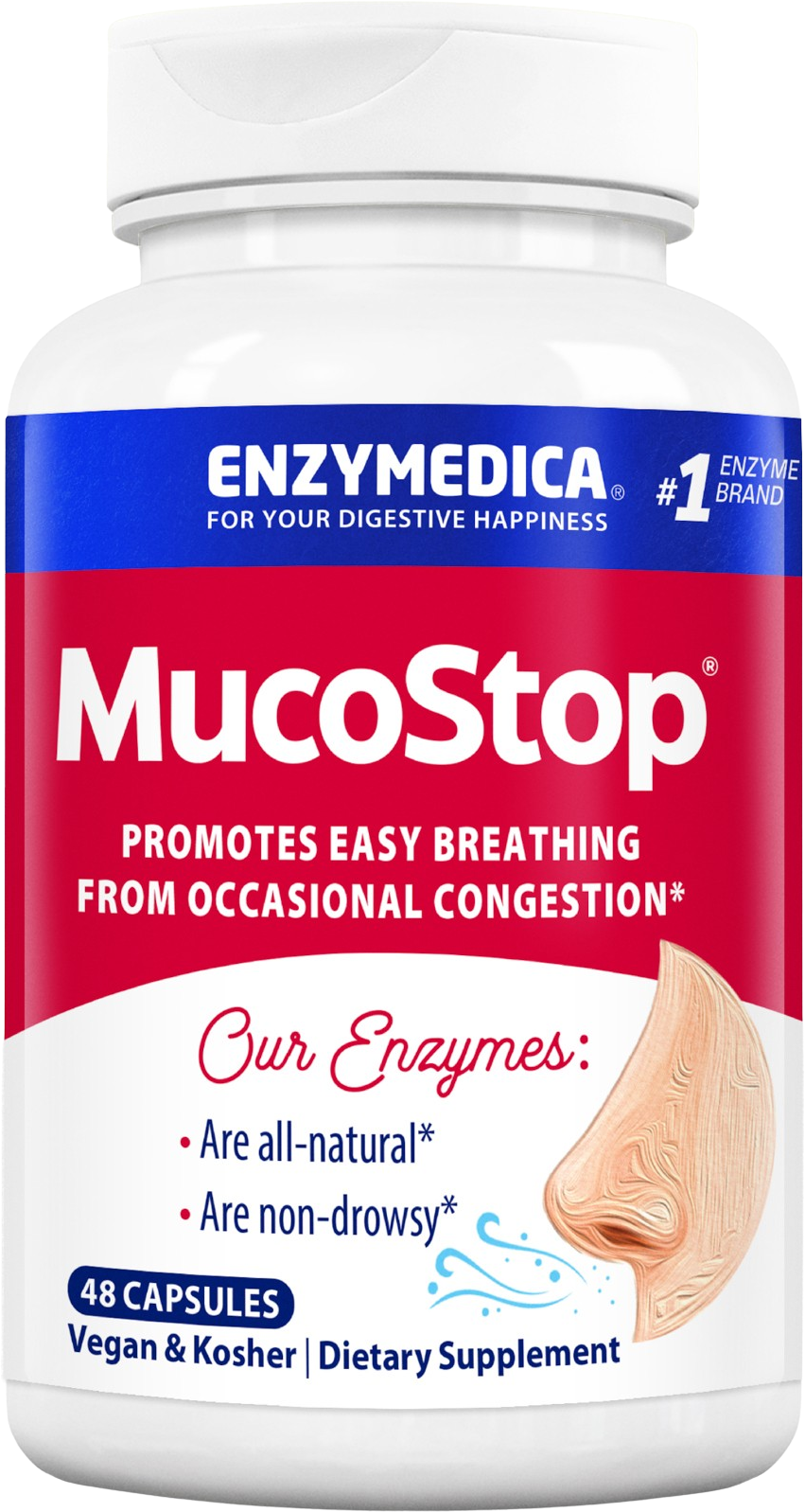 MucoStop® contient un mélange ciblé d’enzymes, dont la Mucolase™ spécialisée. Cette formule est conçue pour accompagner certains processus naturels de l’organisme grâce à l’activité enzymatique. Grâce à la technologie brevetée Thera-blend®, les enzymes contenues restent actives sur l’ensemble du spectre de pH de l’organisme. La formule est également complétée par de l’amylase et de la protéase afin d’offrir un soutien enzymatique plus complet. Les gélules sont entièrement d’origine végétale, casher et fabriquées sans OGM.