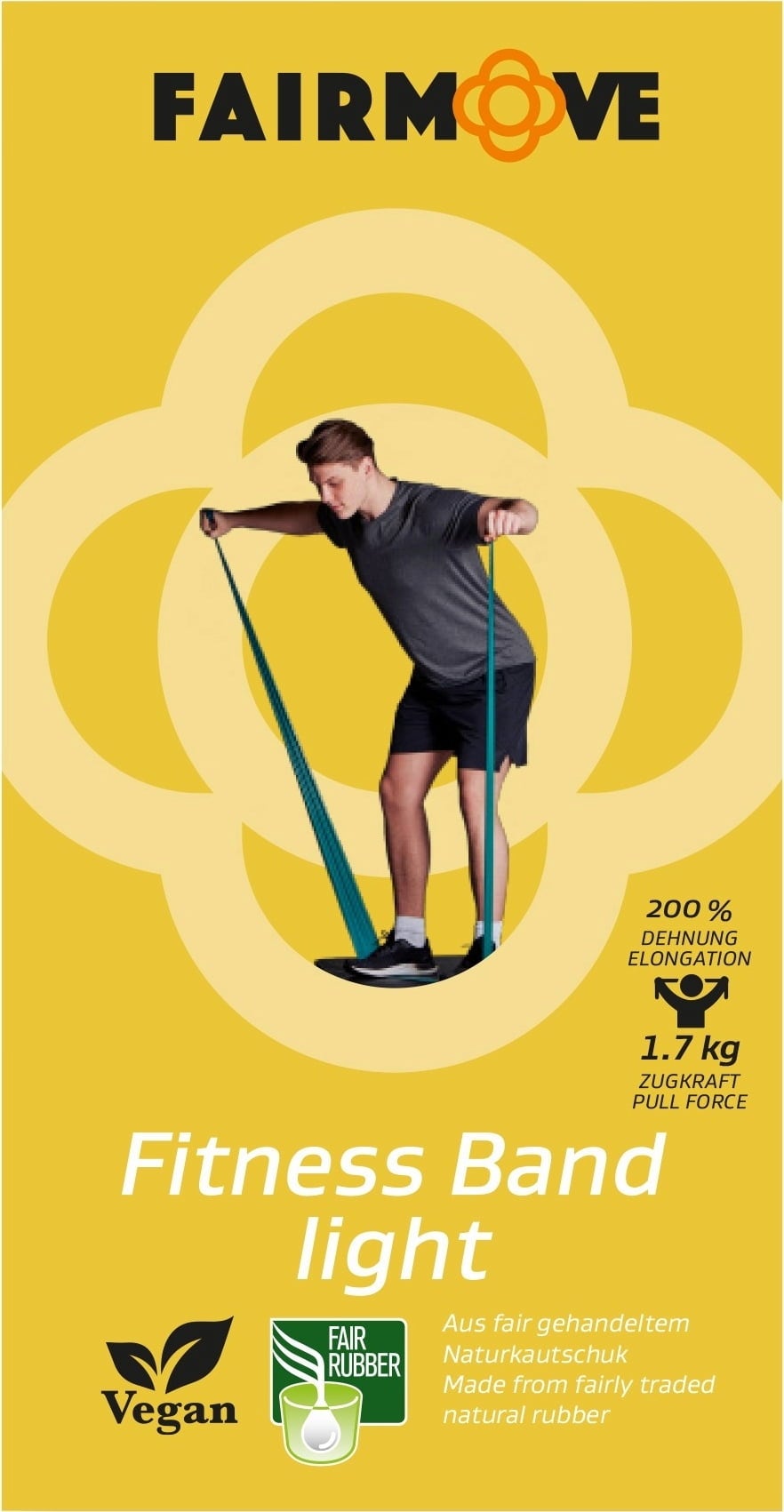 Ce bande de fitness FAIR MOVE est un outil polyvalent pour étirer l’ensemble du corps, renforcer la musculature de manière ciblée et améliorer l’équilibre – idéal pour le yoga, le Pilates ou tout autre programme de fitness que vous appréciez. Laissez-vous convaincre par la qualité exceptionnelle et la grande résistance à la déchirure de ce matériau durable ! Il est non seulement exempt de plastique et de plastifiants, mais composé à 100 % de caoutchouc naturel issu du commerce équitable au Sri Lanka. Vous pouvez ainsi vous entraîner en toute sérénité : ce bandeau entièrement vegan est même biodégradable en fin de vie, sans laisser de résidus.