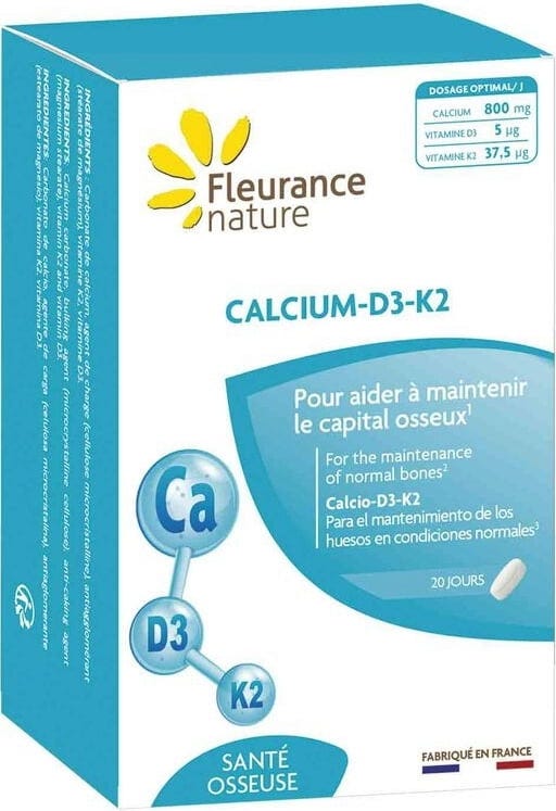 Calciumcarbonat, charge (Cellulose microcristalline), anti-agglomérant (Magnesiumstearat), Vitamin K2, Vitamine D3 (cholécalcifeerol)