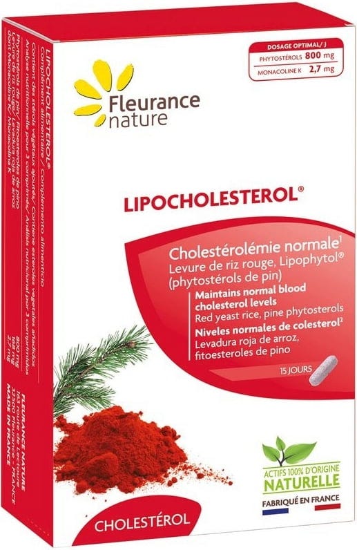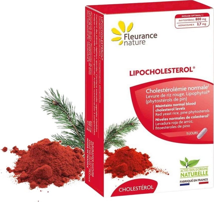 Le Lipocholestérol® associe levure de riz rouge et Lipophytol. Lipophytol est un extrait végétal issu de phytostérols de pin microencapsulés. La microencapsulation améliore leur solubilité dans l’estomac et renforce leur efficacité. La levure de riz rouge est obtenue par la fermentation de Monascus purpureus, un champignon microscopique rouge, sur le riz. Utilisée depuis des siècles, elle est reconnue pour ses propriétés, notamment grâce à la monacoline K.