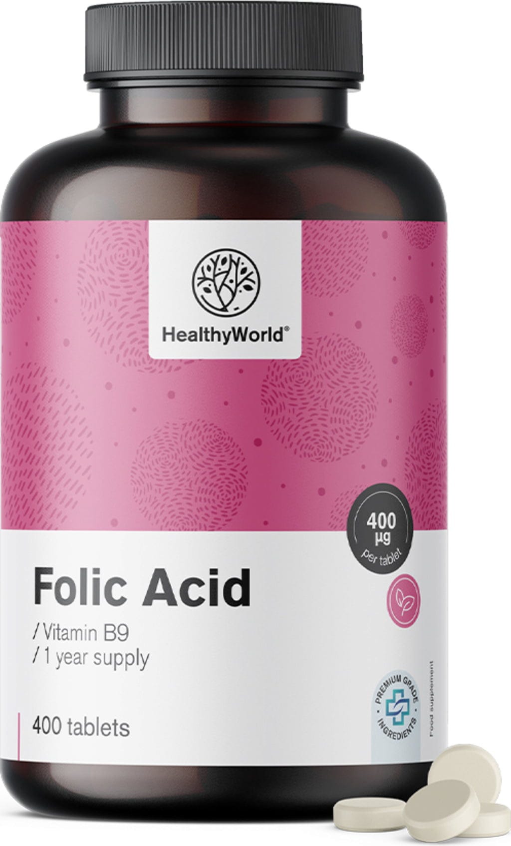 HealthyWorld Acide Folique, 400 μg, 400 comprimés