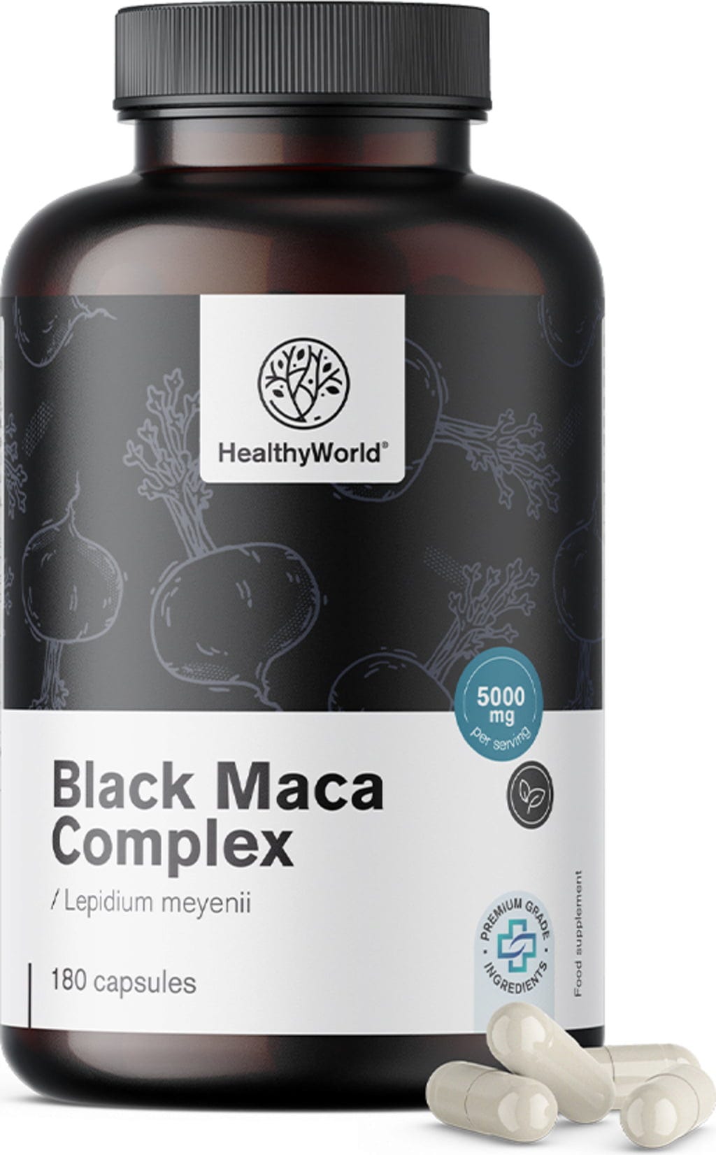 HealthyWorld Complexe de Maca Noire 5000 mg, 180 gélules
