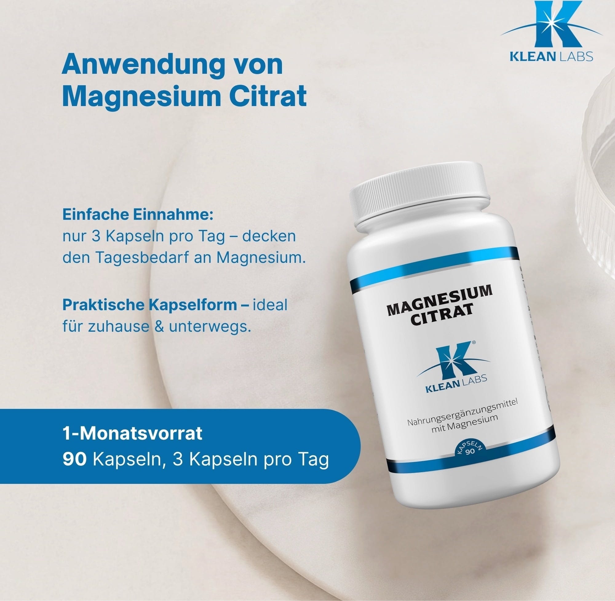 Le citrate de magnésium biodisponible, de la marque Klean Labs, convient comme complément alimentaire à prendre au quotidien et est exempt de gluten, de lactose et de soja. Une gélule contient 150 mg de citrate de magnésium.