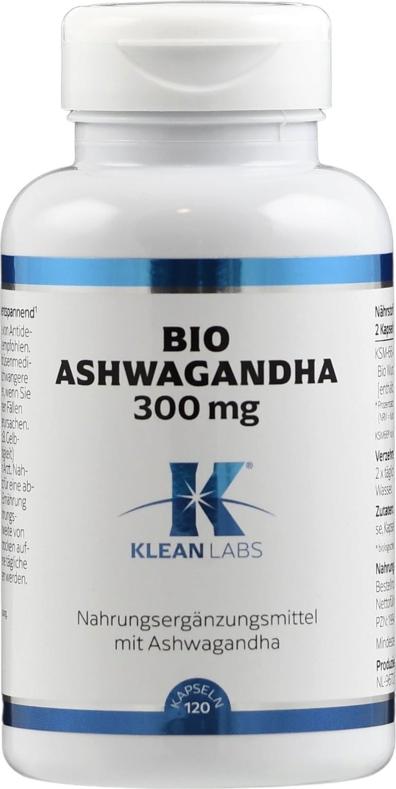 KLEAN LABS Extrait de Racine d'Ashwagandha Bio 300 mg, 120 gélules