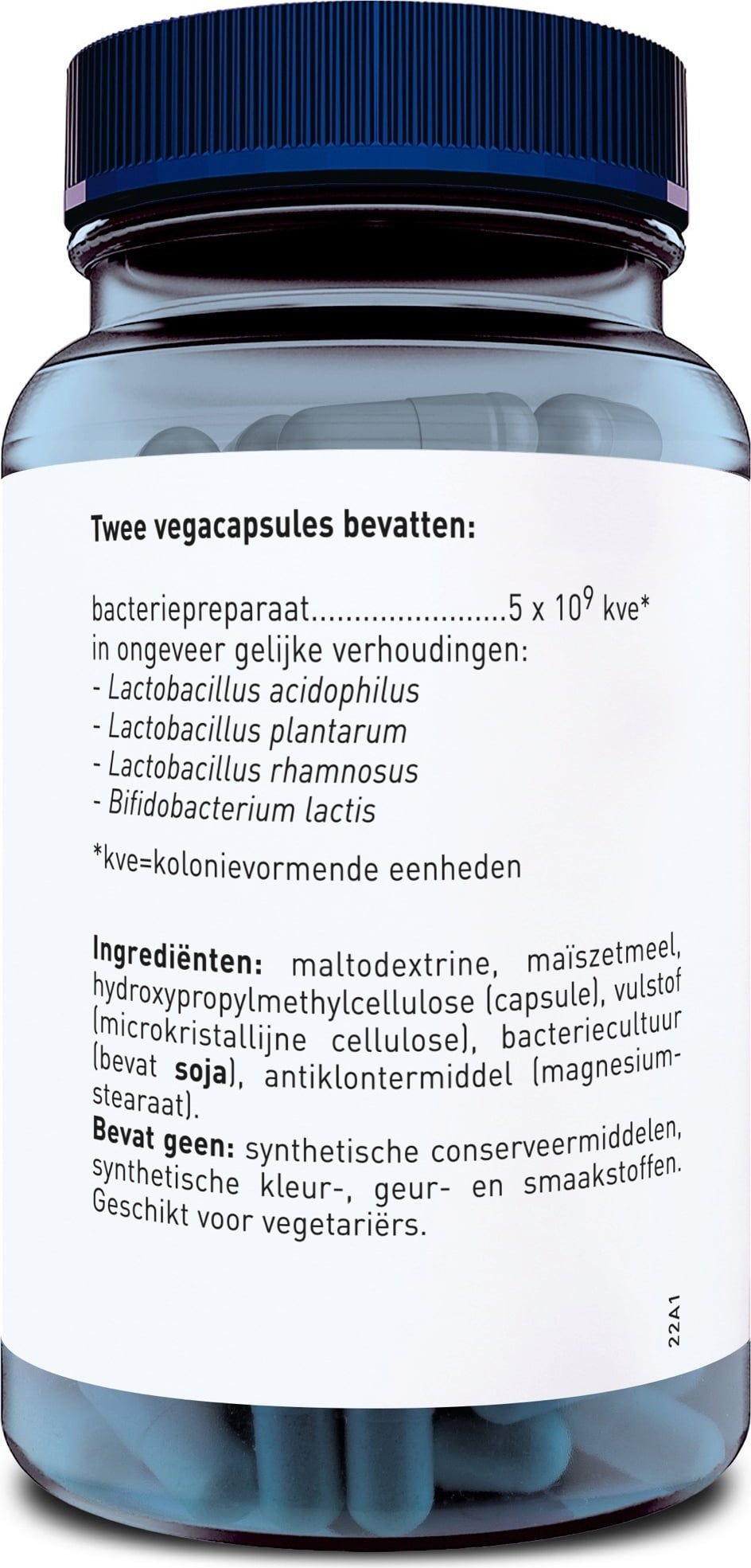 Kapselhülle (Hydroxypropylméthylcellulose), charge (Cellulose microcristalline), Cultures microbiennes (soja)