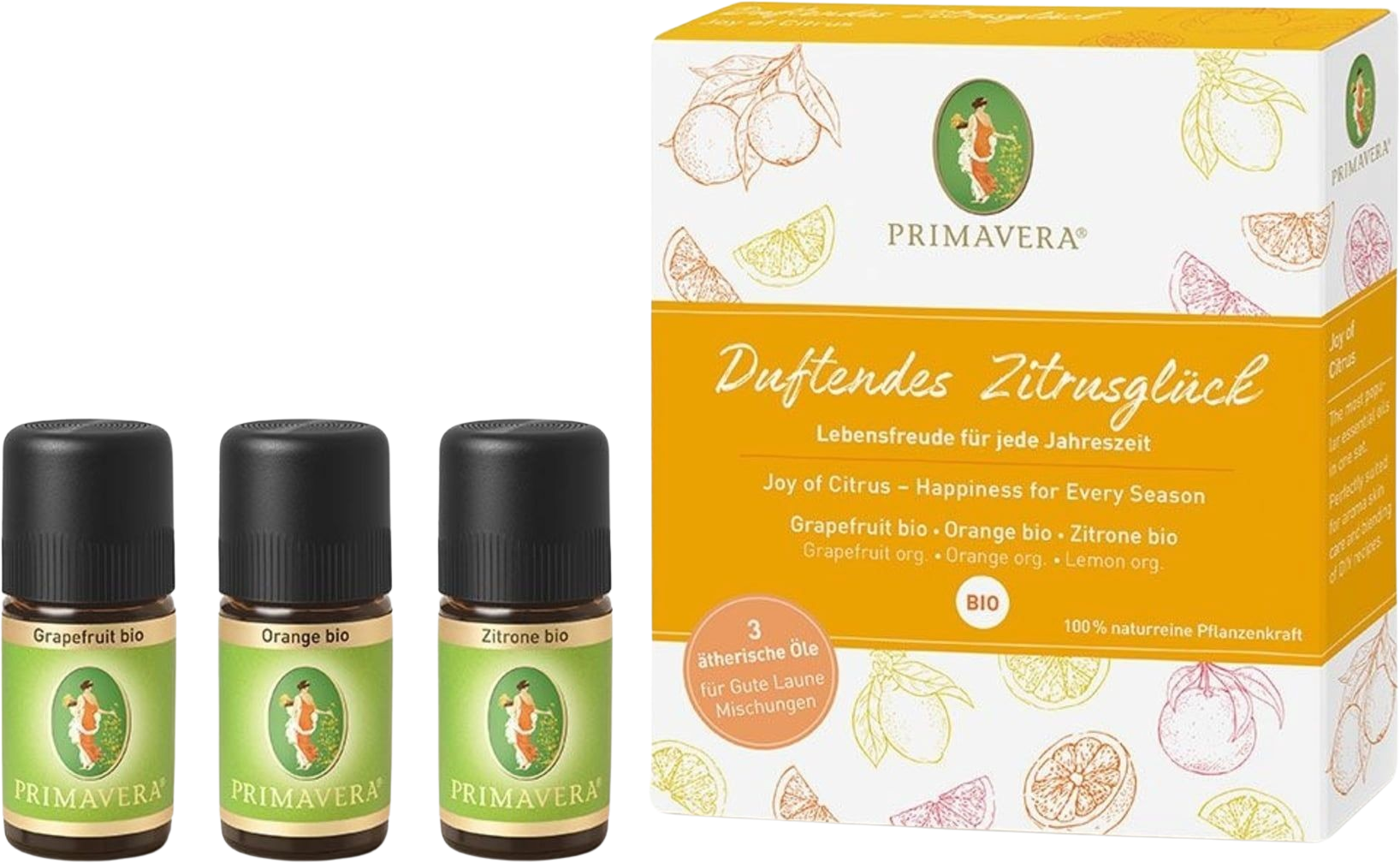 PRIMAVERA a réuni trois des huiles essentielles d’agrumes les plus populaires dans un coffret : idéal pour vos cosmétiques maison.