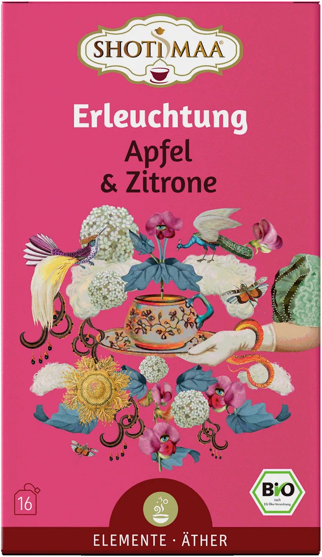 Avec cette recette harmonieuse Shoti Maa, créez un espace de calme au cœur de l’agitation du quotidien. Une base composée de 36 % de pomme, de citronnelle fraîche et d’hibiscus est délicatement équilibrée par la douceur du honeybush et des coques de cacao. L’accord précis du curcuma, de la cannelle, du basilic et d’une touche de jus de citron confère à ce mélange une profondeur subtile et une fraîcheur raffinée. Inspirée par l’élément éther, cette infusion biologique invite à percevoir consciemment l’espace qui nous entoure et à trouver un instant de silence précieux. Chaque gorgée accompagne une attention pleinement ancrée dans l’instant présent.