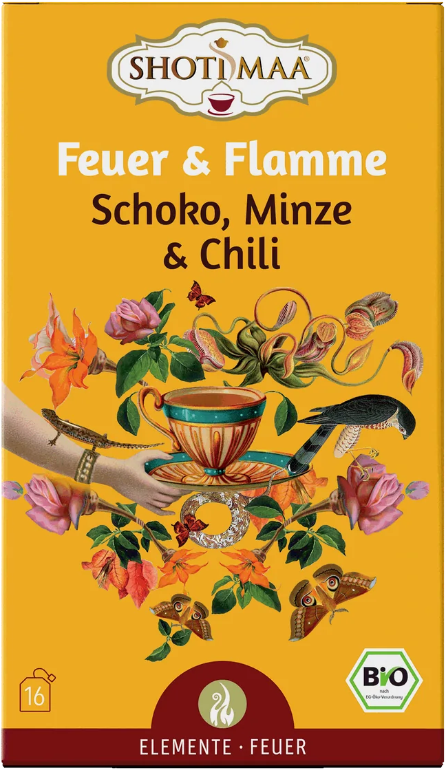 Vivez un fascinant jeu de contrastes avec cette création Shoti Maa, où les coques de cacao rencontrent la menthe poivrée. La profondeur intense du cacao et la fraîcheur de la menthe sont relevées par une touche précise de piment, qui apporte une intensité agréable. Complétée par l’anis, le fenouil et une délicate note de pétales de rose, cette composition s’inspire de l’élément feu. Chaque gorgée de cette infusion biologique accompagne les moments de transition, en soutenant la présence et une énergie nouvelle pour avancer avec clarté dans ses intentions.