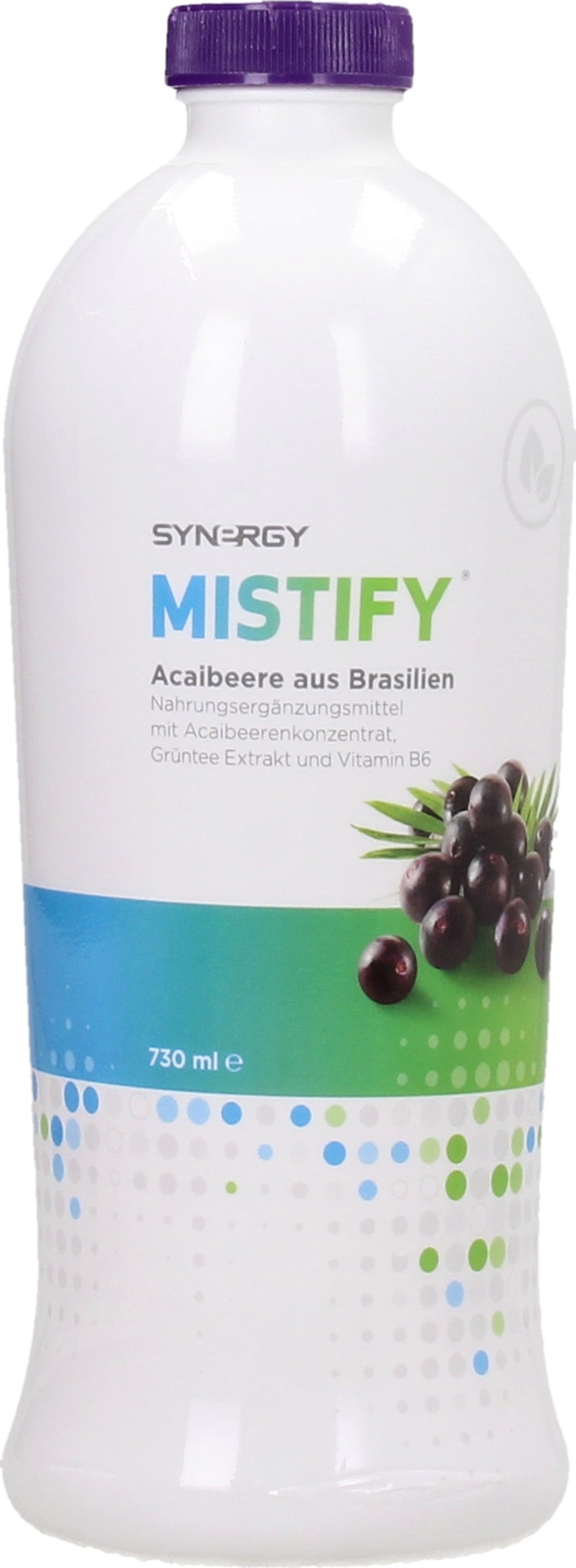 Mistify est un complément nutritionnel sous forme liquide. Il contient de la vitamine B6, des baies d'açai et de l'extrait de thé vert.