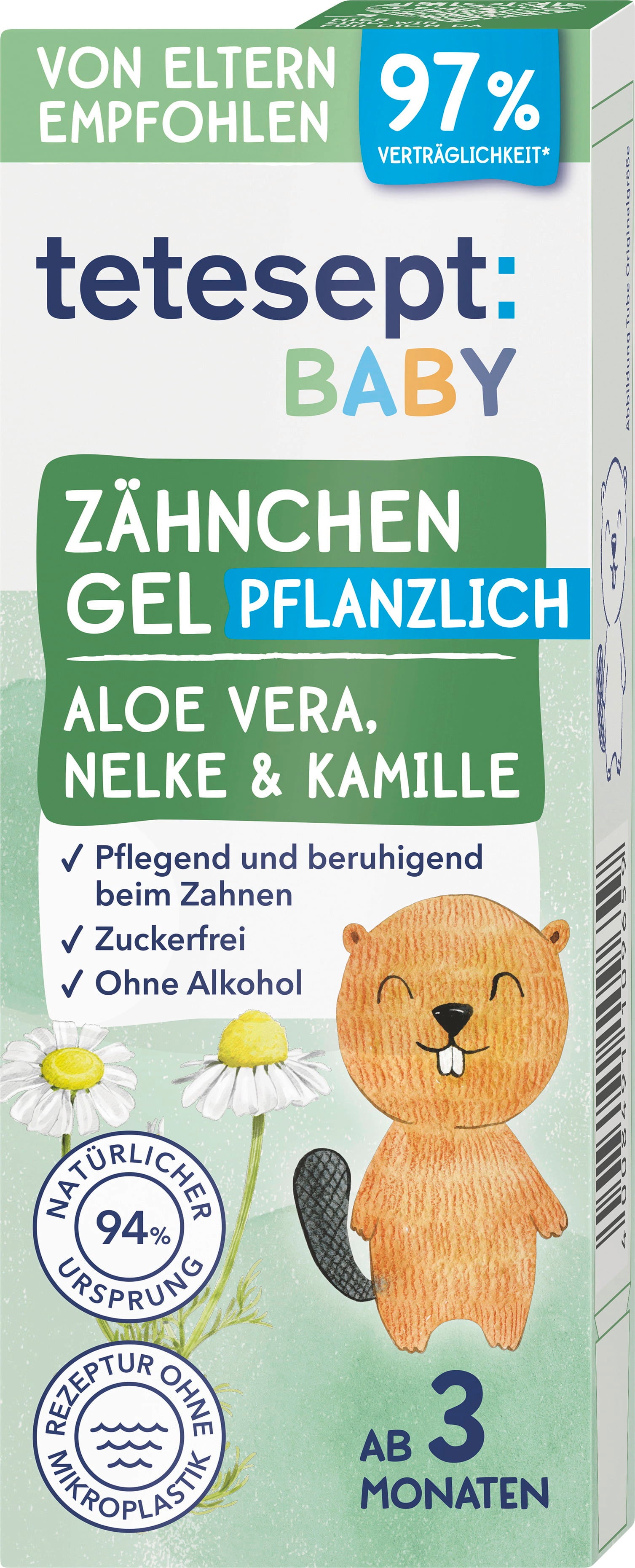Le Gel Dentaire Végétal pour Bébé végane de tetesept est spécialement conçu pour soulager les gencives lors de l’apparition des premières dents. L’aloe vera, la camomille et le clou de girofle prennent soin en douceur de la bouche de votre enfant. La formule ne contient ni alcool ni sucres ajoutés. Convient aux bébés dès 3 mois.